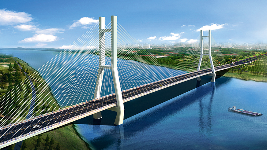 濟南黃河公路大橋采用雙塔雙索面等高鋼桁架斜拉橋結(jié)構(gòu)形式,全長 1028 米,主跨 488 米,主塔高 168 米,主梁采用整體式鋼桁梁斷面,上下兩層,上層橋面為雙向八車道公路橋面,下層為雙線軌道橋面。濟南黃河公路大橋是貫徹落實黃河流域生態(tài)保護和高質(zhì)量發(fā)展的國家戰(zhàn)略深入實施的重大項目,是加快濟南“擁河發(fā)展”、奮力開啟“黃河時代”的重要保障。